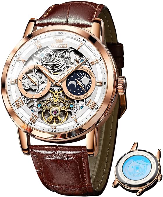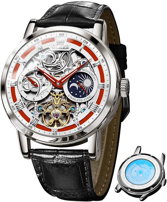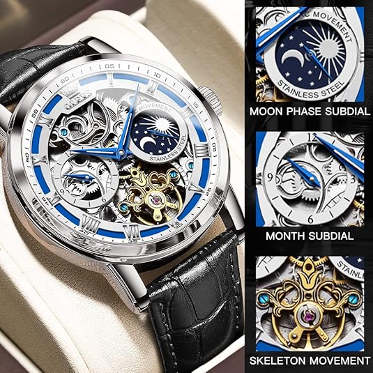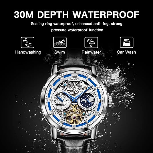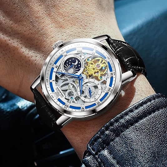 - ⌚Automatic mechanical men's watches: The classic skeleton tourbillon design lets you feel the art of mechanical watches. The multi-functional three-dimensional dial fully demonstrates the watchmaking craftsmanship. Business style, showing the charm of men's wrist watches.