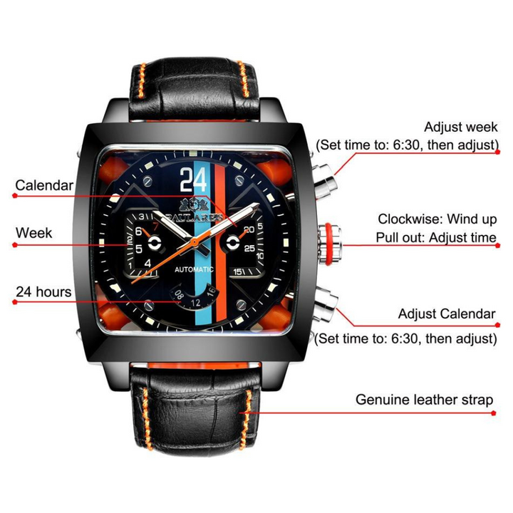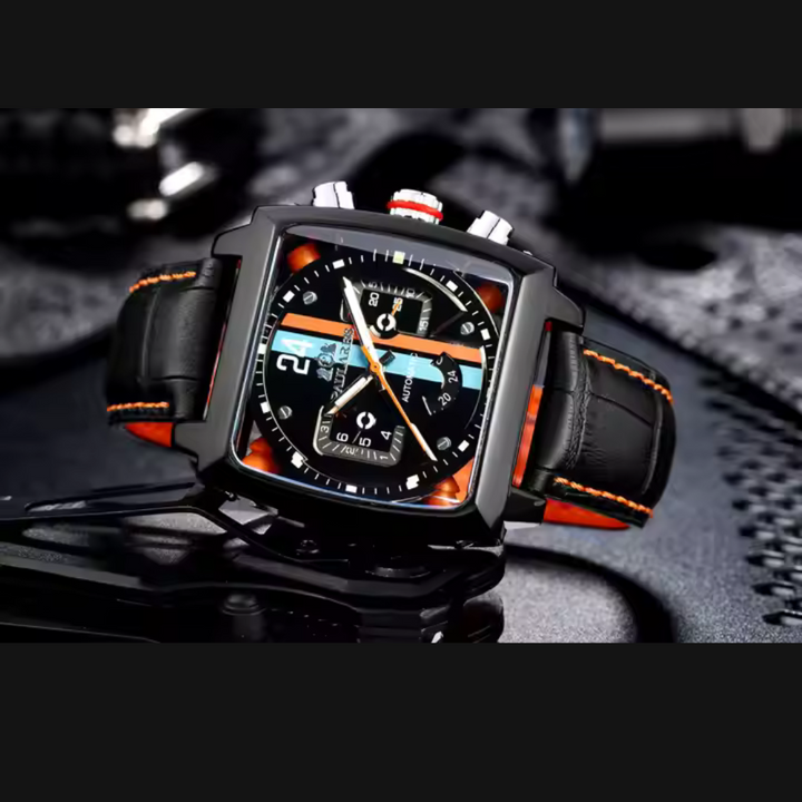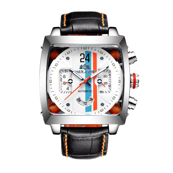 PAULAREIS Watch Automatic Men Mechanical Multifunctional Luminous Watches Waterproof Luxury Leather Mens Square Wristwatch reloj